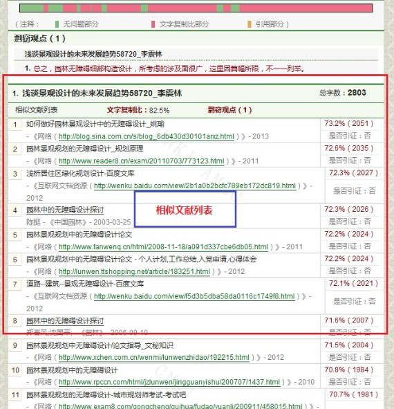 我们以全文标明引文和全文对照报告单为例(一般学校、单位只看这两个报告单),如下图所示我们可以看到: